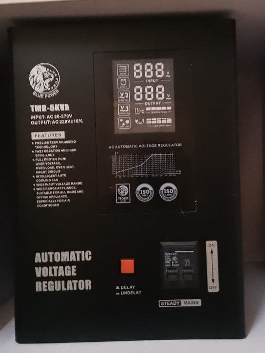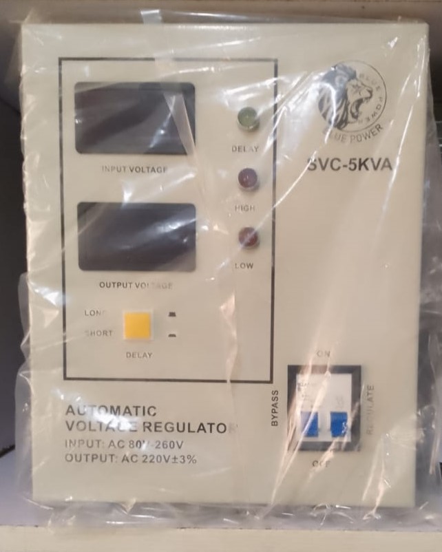 Blue Power Voltage Regulator ( Stabilizers) Feature One Automatic Voltage RegulatorSVC – 5 KVAInput: AC 80V – 260VOutput: AC 220V +/- 3% Feature Two Automatic Voltage RegulatorTMB 5 KVAInput: AC 80V – 270VOutput: AC 220V +/- 10% Feature Three Automatic Voltage RegulatorTMB 20 KVAInput: AC 80V – 270VOutput: AC 220V +//- 10%